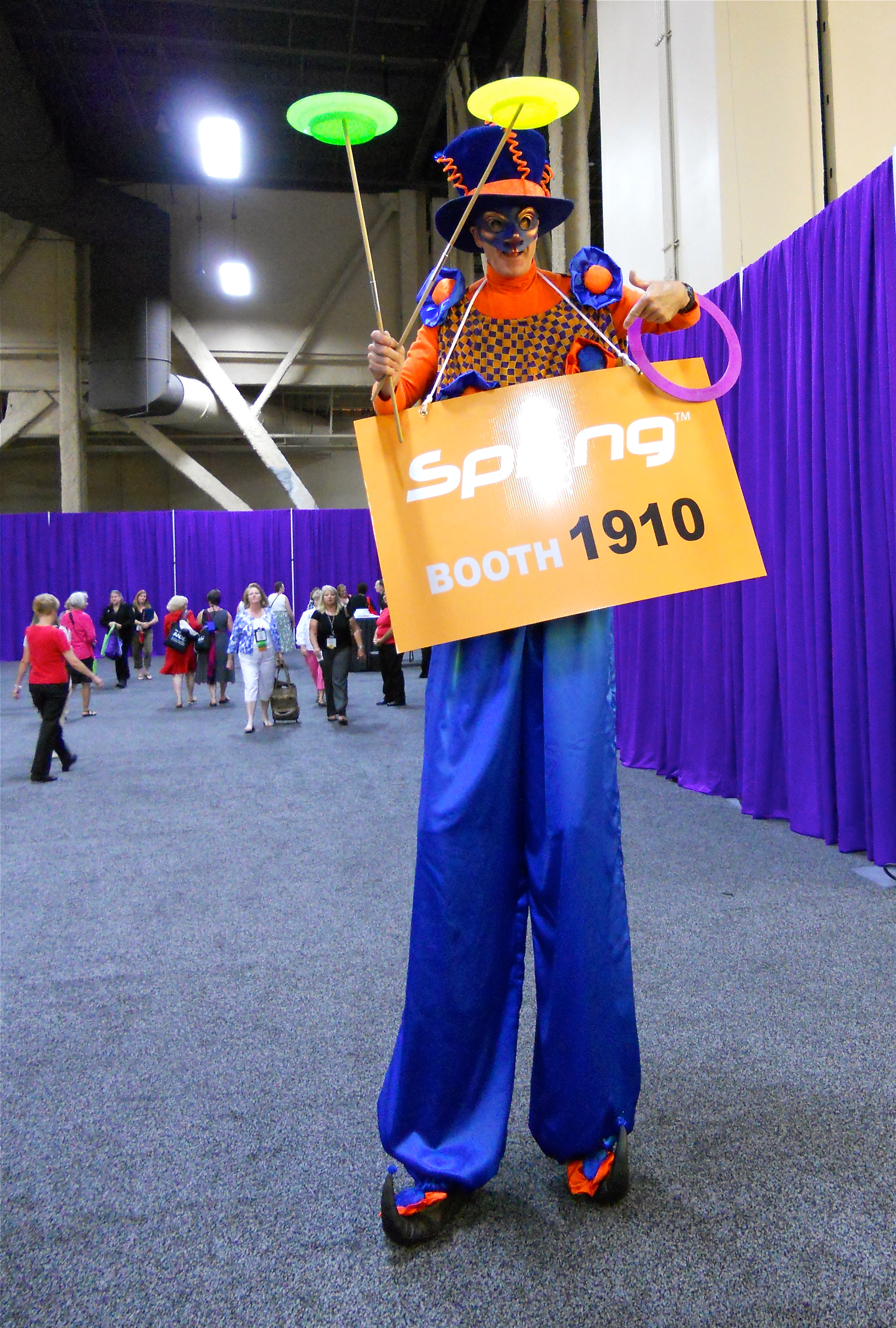 The highlight of the trade show was the man on stilts