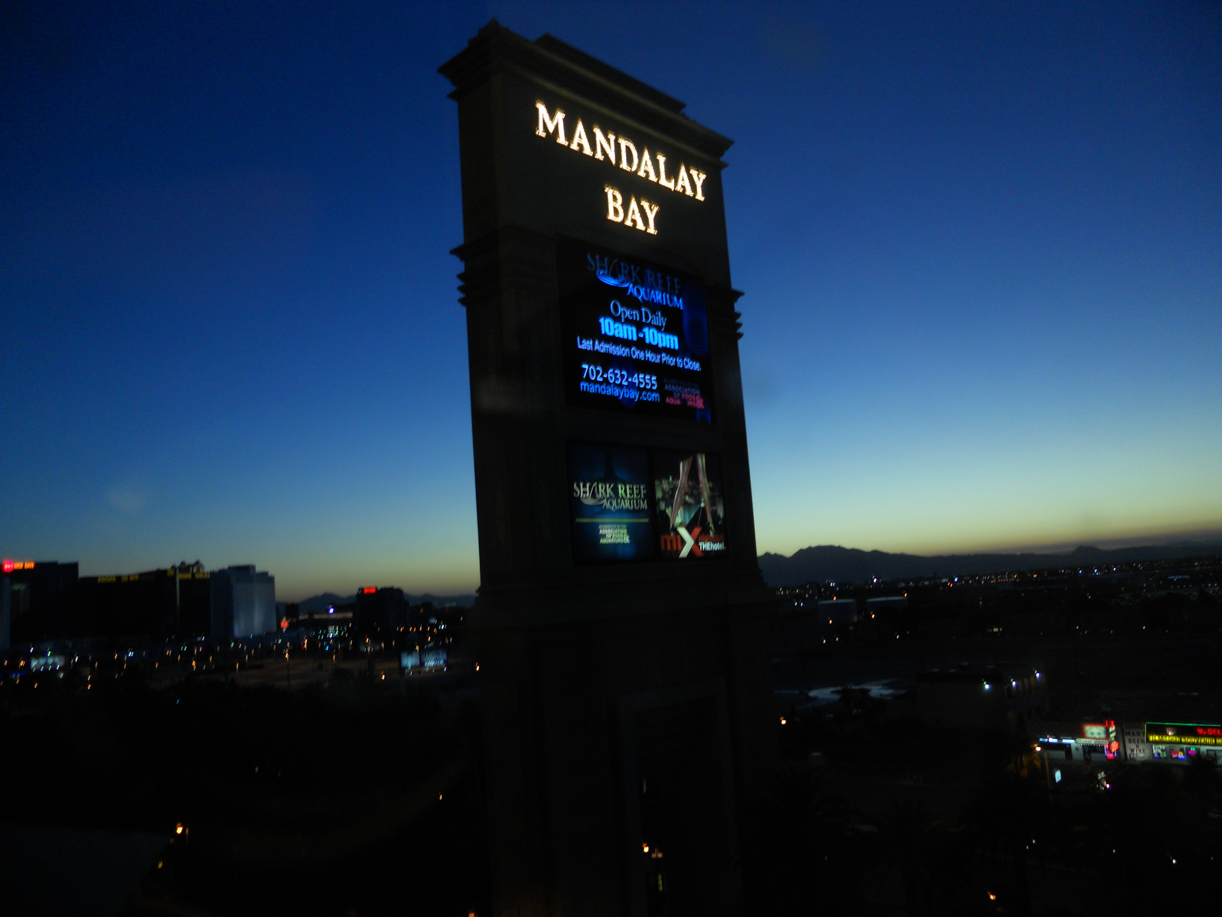 The Mandalay Bay Hotel & Casino where I stayed is a beautiful hotel. And it is humungous. It was crowded with vacationers and convention attendees. The bright lights and restaurants kinda reminded me of New York City. However, during the day, the casino was pretty empty. Not too many people were at the slot machines, and the black jack tables were vacant. I felt sorry for the dealers who were just standing there and had no one for whom to deal cards. They must have been bored stiff.