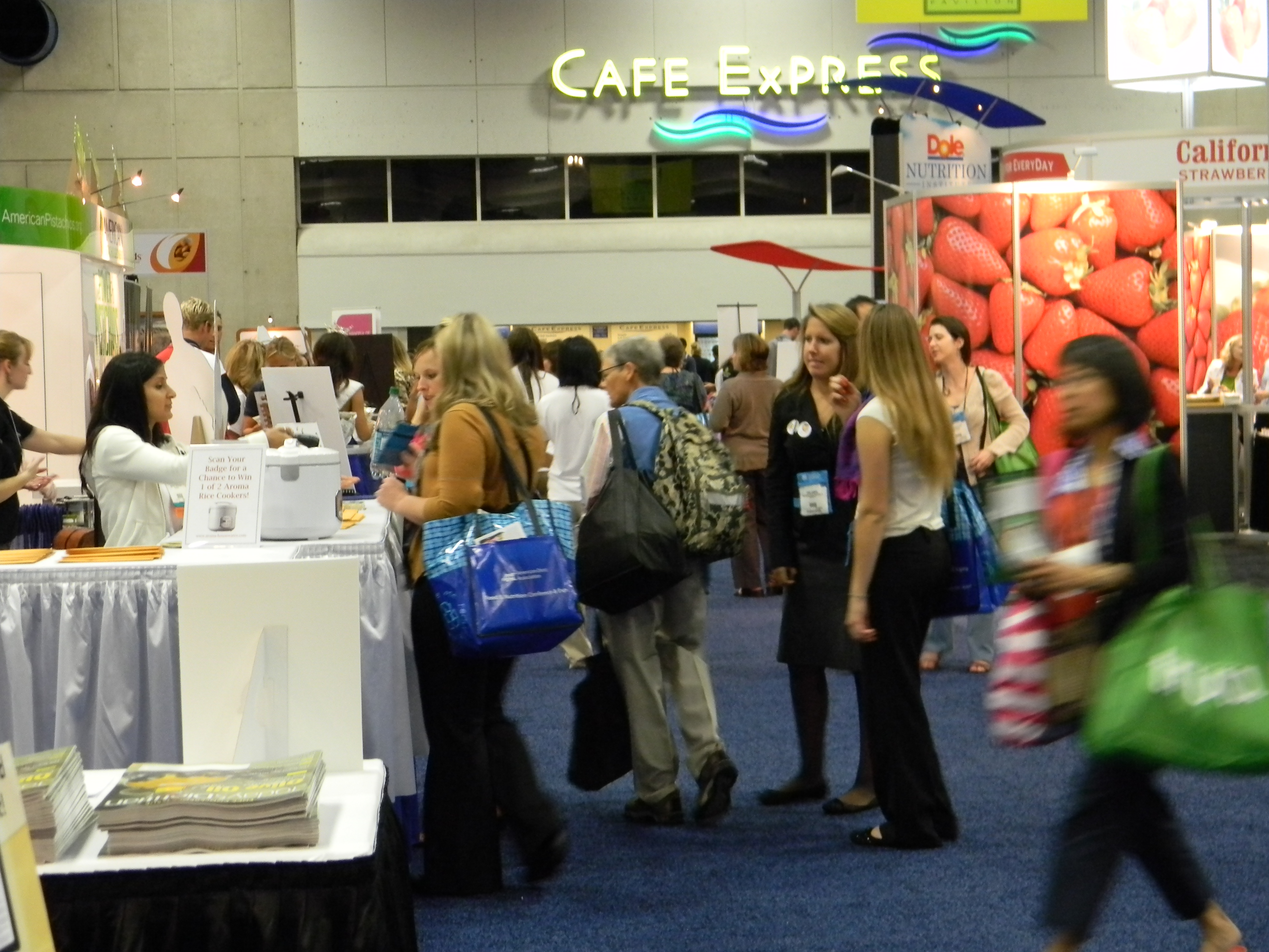The convention center was huge. I heard almost 7,000 nutrition professionals attended the conference from around the country. Large, medium, and small food manufacturers set up gorgeous booths to showcase their products, and offer food and snack samples to passersby. Some of the food was delish; some not so tasty.