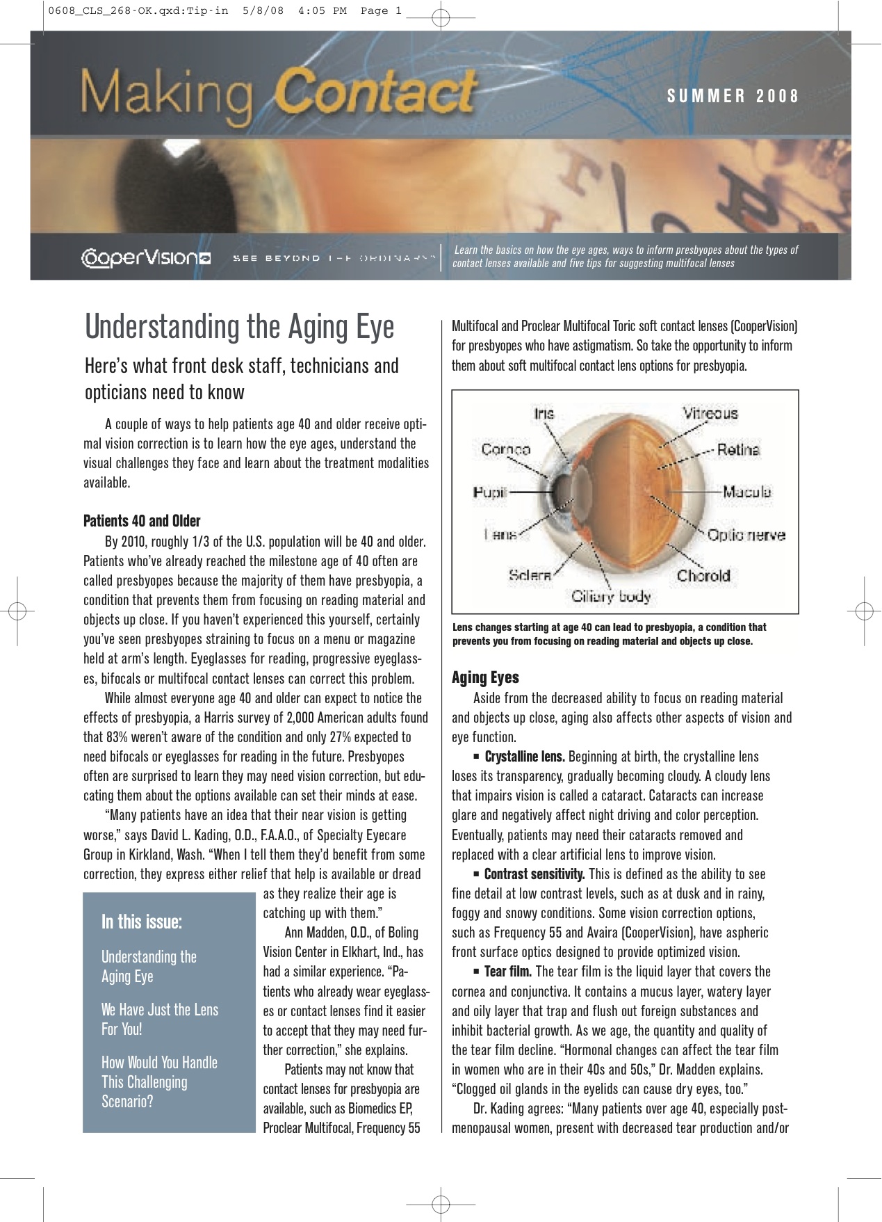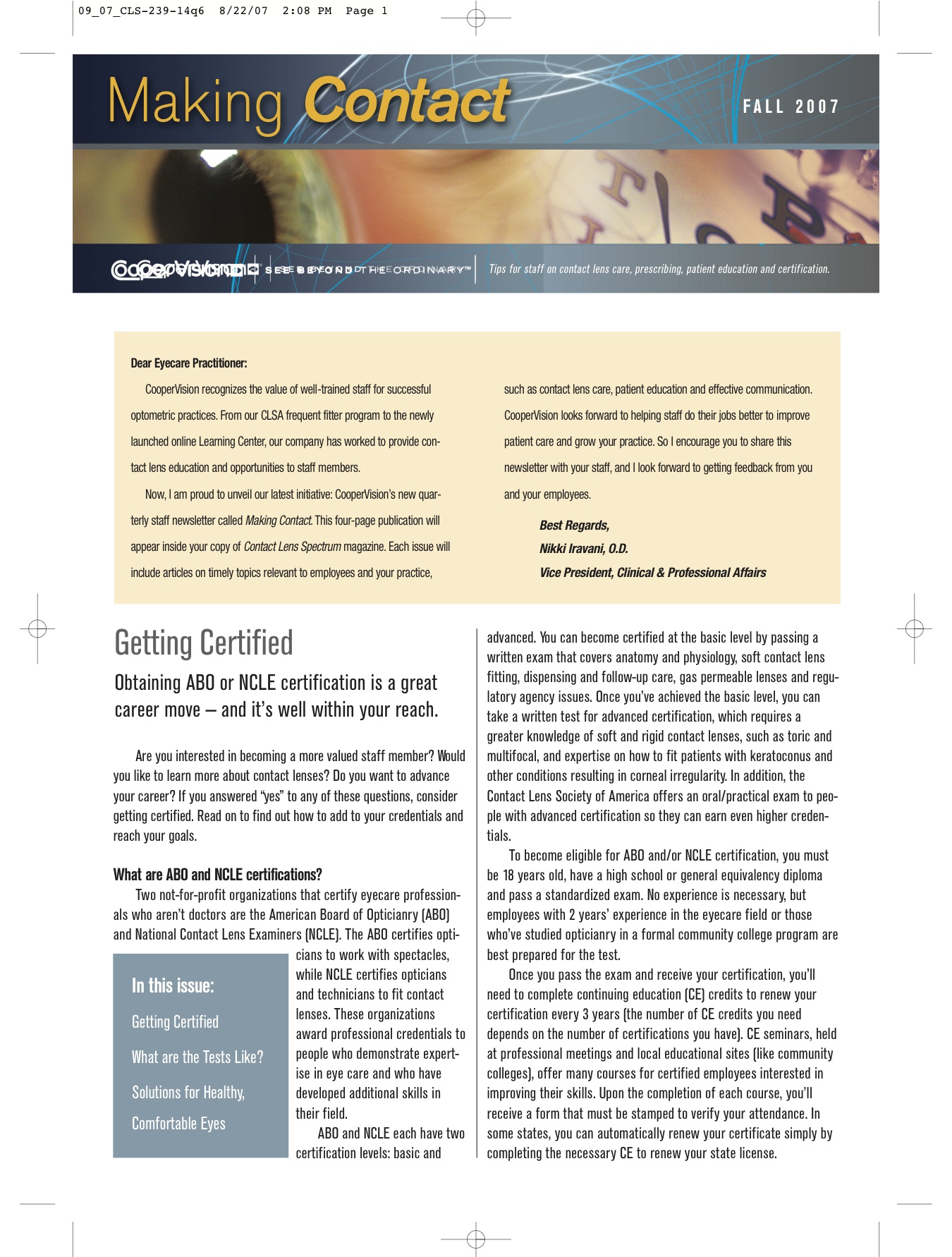 Newsletters Saving Pennies Taking Patient Histories Kids and Contact Lenses The Aging Eye Higher Education Getting Certified Premium IOLs Patient Expectations FDA and Contact Lens Care Like Loading...